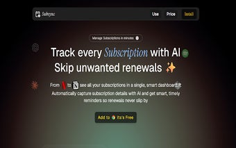 SubSync Smart Subscription Manager is een krachtige Chrome-add-on die gebruikers helpt bij het beheren van hun abonnementen met behulp van AI-technologie. De applicatie biedt een eenvoudige manier om abonnementsdetails automatisch vast te leggen vanaf facturerings- of betalingspagina's met slechts één klik, waardoor het tijd en moeite bespaart. Gebruikers ontvangen slimme herinneringen voordat hun abonnementen worden verlengd, zodat ze hun opties kunnen overwegen of abonnementen kunnen annuleren indien nodig.